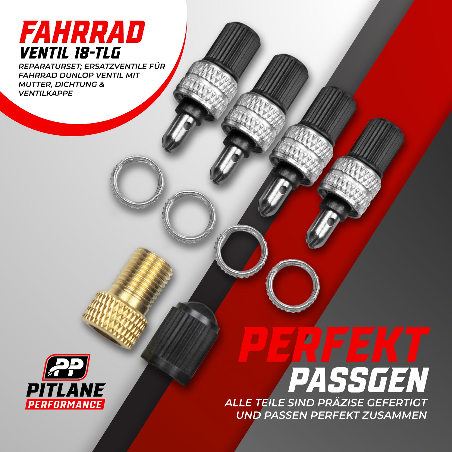 4er Set Dunlop Fahrradventil inkl. Kappe & Schrader Adapter 18 teiliges Reperaturset