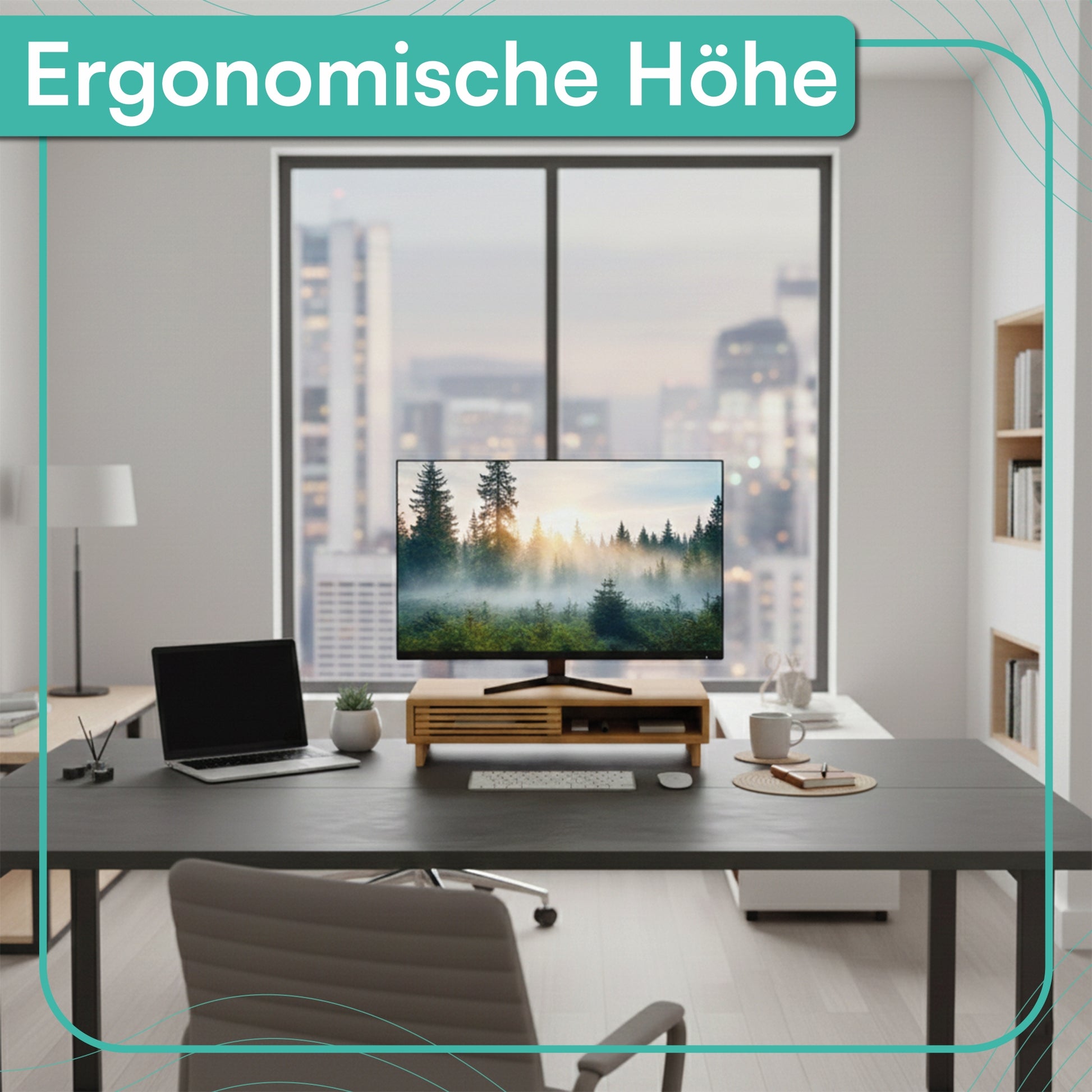 Der Monitorständer mit integriertem Schiebefach vereint ergonomischen Komfort mit cleverer Funktionalität. Mit seiner erhöhten Konstruktion verbessert er die Bildschirmhöhe und fördert eine aufrechte Sitzhaltung – ideal für entspanntes Arbeiten über längere Zeiträume.