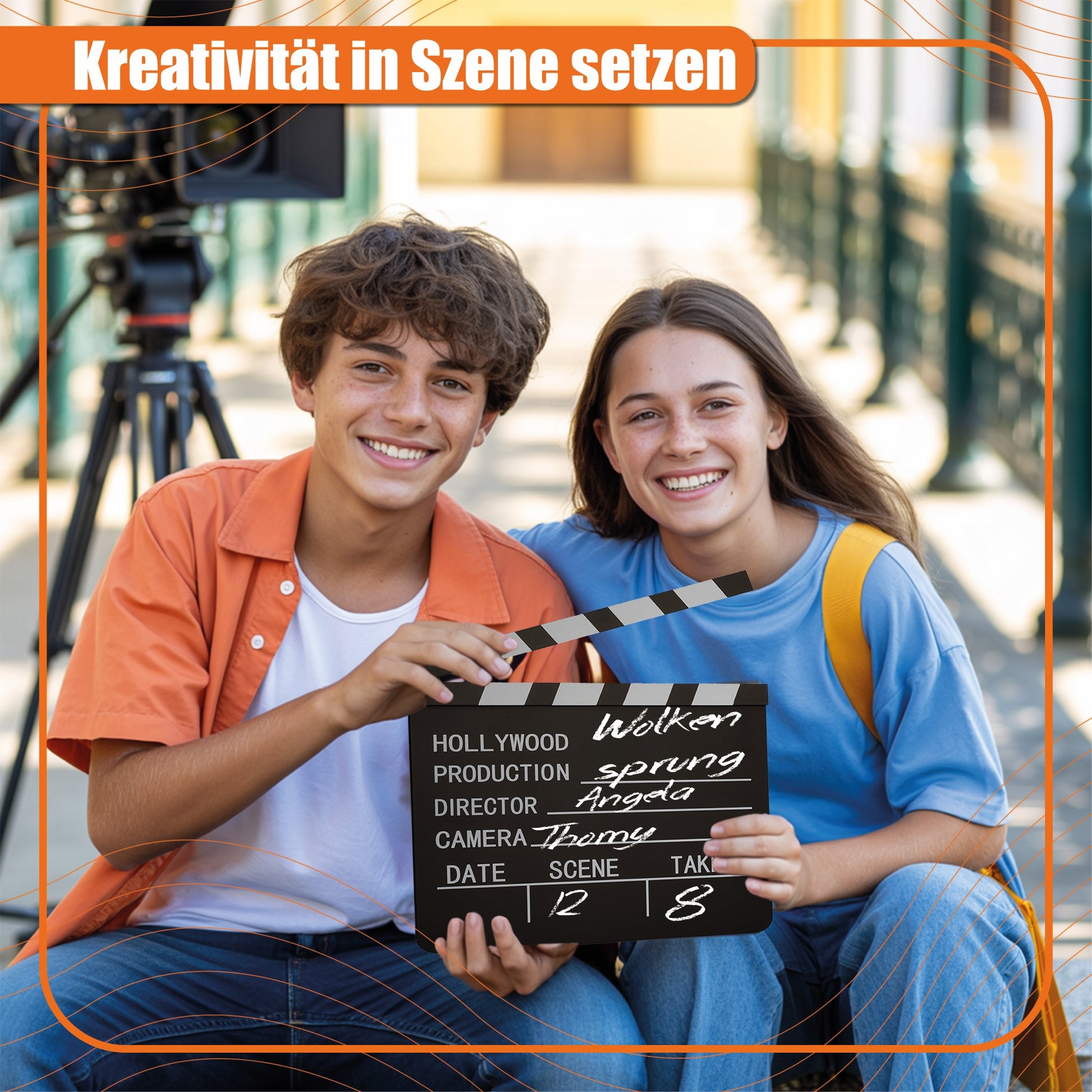 - Kompakte Abmessungen: Mit Maßen von 20 x 20cm oder 30 x 27 cm ist die Filmklappe handlich und leicht zu transportieren, ohne dabei an Funktionalität einzubüßen.