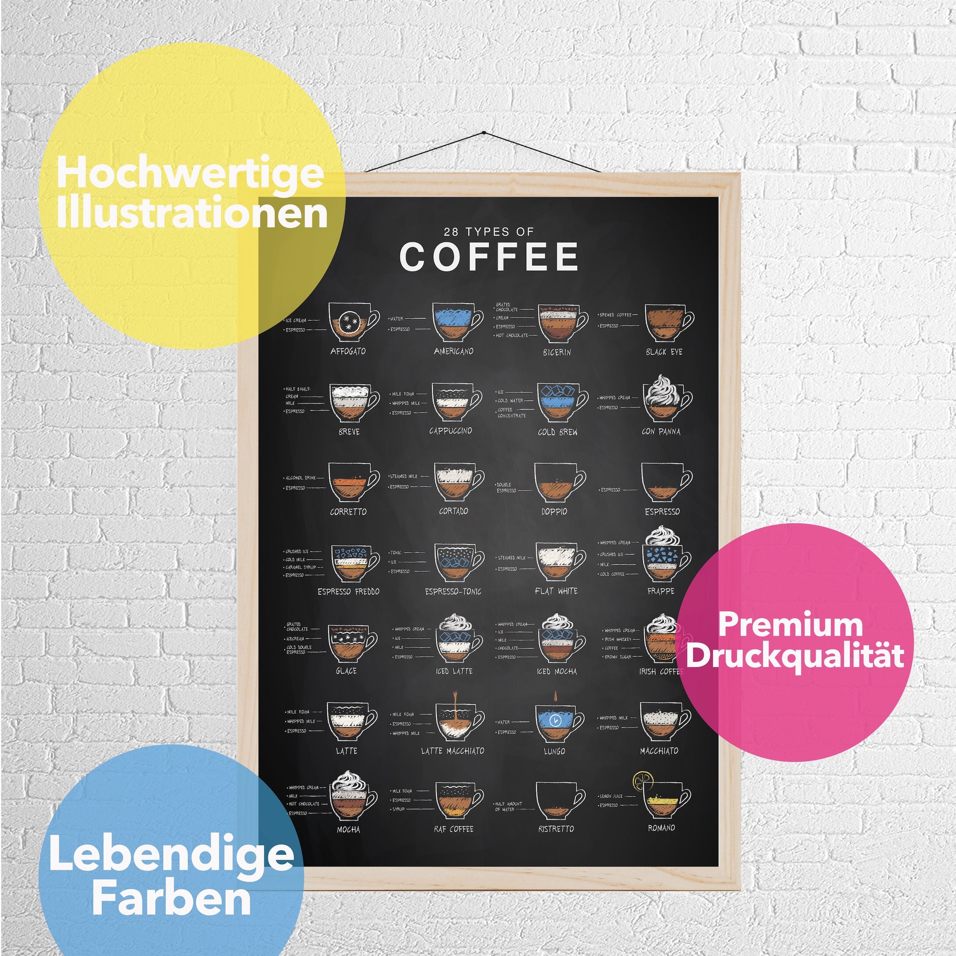 Lineo® Poster 28 types of coffee Kaffeeposter für Liebhaber