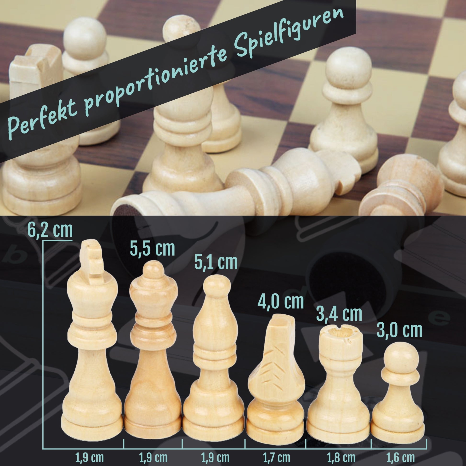 Das klappbare Schachbrett dient gleichzeitig als Aufbewahrungsbox – einfach aufklappen, spielen und anschließend die Figuren sicher verstauen. Mit einer kompakten Größe von 29 x 29 cm bietet es optimale Spielgröße bei gleichzeitig hoher Mobilität.