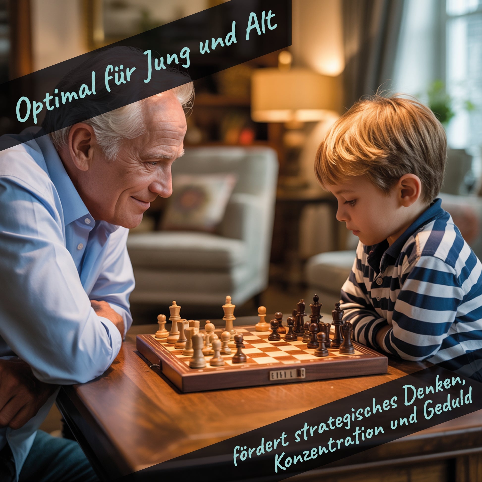 Das magnetische Schachbrett von Ludo Lab vereint edles Holzdesign mit durchdachter Funktionalität. Perfekt geeignet für alle, die auch unterwegs nicht auf eine gute Schachpartie verzichten möchten. Die magnetischen Spielfiguren haften sicher am Spielbrett und bleiben auch bei Bewegung an Ort und Stelle – ideal für Reisen, Bahnfahrten oder den Urlaub.